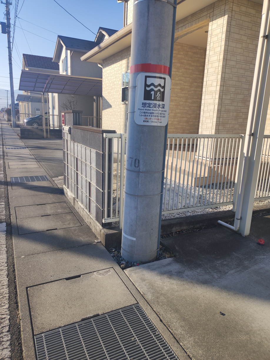 昭和町のホームページで『想定浸水深表示板』について調べてみると、特に説明はありませんでした。そのため、近隣市町村で説明があった富士川町のホームページを参考にまとめてみました。富士川町は、昭和町とは釜無川を挟み西と東側に位置していて、当然のごとく、氾濫を想定している河川はともに「釜無川」となります。